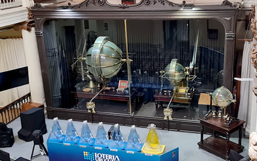 El 24 de Agosto de 1910, en oportunidad de sortearse una Lotería extraordinaria se inauguro la cabina que protege los globos, siendo realizada en la Escuela Nacional de Artes y Oficios, para amortiguar el enorme ruido producido por el golpeteo de las bolillas". Los cristales (de origen belga) que conforman la "vidriera" nunca fueron cambiados hasta el presente y tienen 1 cm de espesor y casi 3 metros de altura.